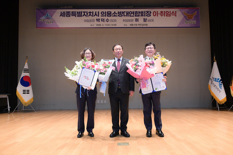 이날 행사에는 최민호 시장과 임채성 시의회 의장, 의용소방대연합회 등 100여 명이 참석해 박덕수 전 연합회장의 노고를 치하하고, 허왕 신임 연합회장의 취임을 축하했다.