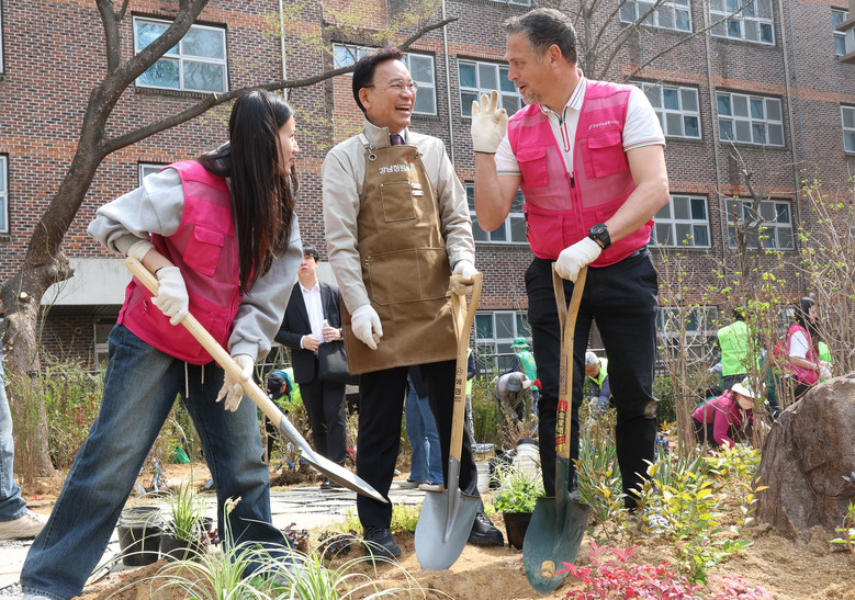 이날 행사에는 기부자와 주민, 어린이, 새마을지회, 강남정원사 등 500여 명이 참여해 산딸나무와 단풍나무 등 교목 94주, 영산홍과 사철나무 등 관목 1,000주를 심고, 초화류 정원과 벤치 등을 함께 조성했다.