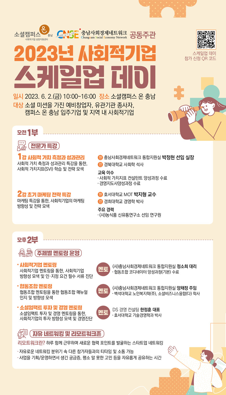 이번 행사는 소셜캠퍼스온 충남 입주기업 및 지역 내 소셜 미션을 가진 누구든 참여 가능하며 소셜캠퍼스온 충남 이벤트홀(아산시 배방읍)에서 진행된다.