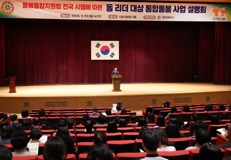 - 동 행정복지센터 중심 지역돌봄 체계 구축 본격화 - [세계타임즈=대전 이채봉 기자] 대전시는 3월 23일 시청 대강당에서 동장, 지역사회보장협의체 위원장 등 지역 리더 300여 명을 대상으로‘동 리더 대상 의료·요양 통합돌봄 사업 설명회’를 개최했다.