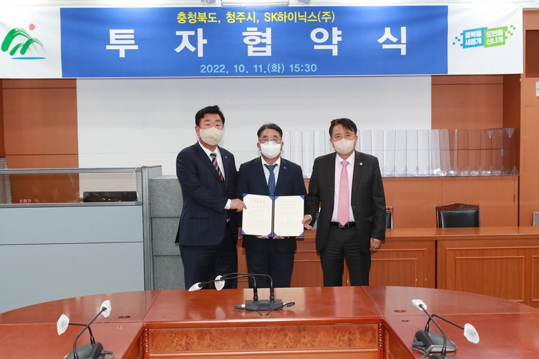 | ▲ 왼쪽부터 이범석 시장, 김동섭 SK하이닉스 대외협력총괄 사장, 김영환 지사 |