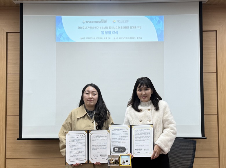 [세계타임즈]최성룡기자 = 경상남도미래세대재단(원장 박춘덕), 경상남도일시청소년쉼터(소장 최문주)와 봉림청소년문화의집(관장 장보라)은 3월 18일(14시) 「위기청소년의 안전한 보호와 건강한 성장」을 위한 업무협약(MOU)을 체결하였다.