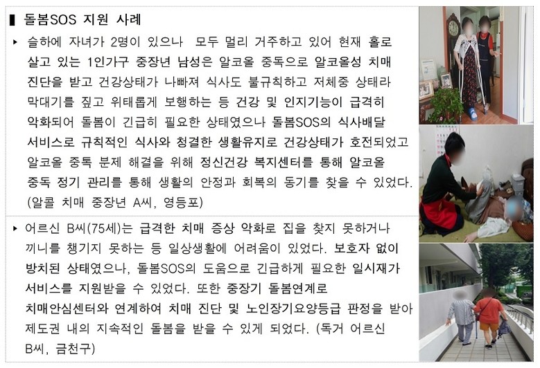 한편, 시는 그동안 돌봄SOS가 도움을 필요로 하는 시민들에게 실질적인 도움이 될 수 있도록 정책을 수정·보완해 왔다.