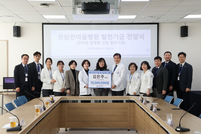 창원한마음병원은 창원시민 김은주 씨가 암병원 건립 발전기금 1천만 원을 전달했다고 2일 밝혔다.