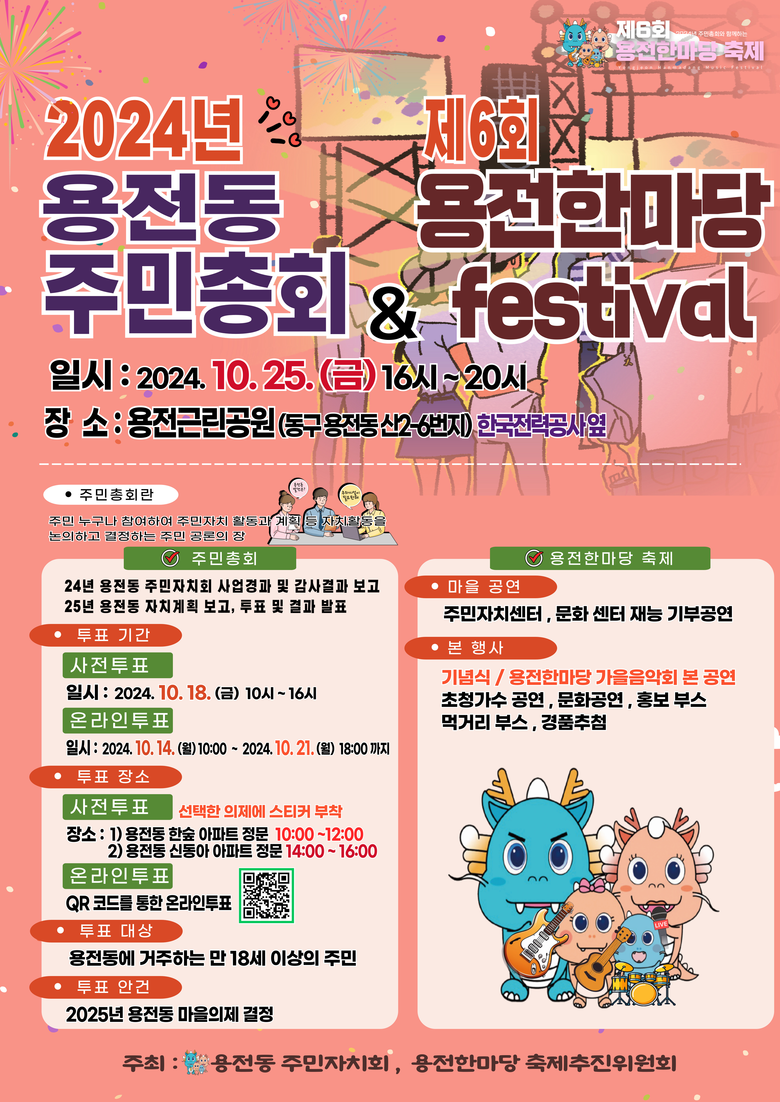 김필자 용전한마당 축제추진 위원장은 “깊어가는 가을 밤, 용전한마당을 통해 용전동 주민 간에 소통과 화합의 장이 마련되길 바란다”며 “많은 분들이 참석해 축제를 즐기시길 바란다”고 말했다.