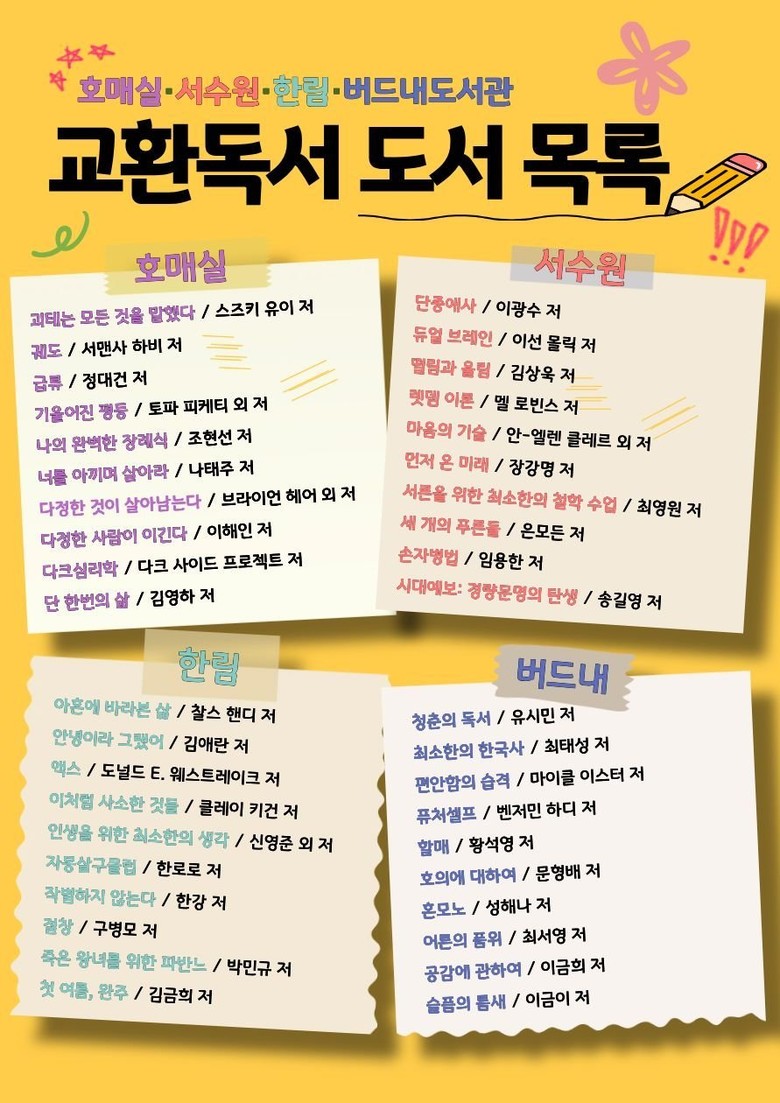 호매실도서관 관계자는 “교환독서 클럽은 같은 책을 읽더라도 서로 다른 시선과 생각을 자연스럽게 나눌 수 있는 프로그램”이라며 “가족. 친구와 함께 특별한 독서 경험을 하길 원하는 시민들의 많은 관심과 참여를 바란다”고 말했다.