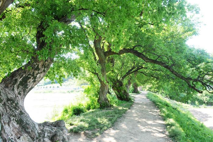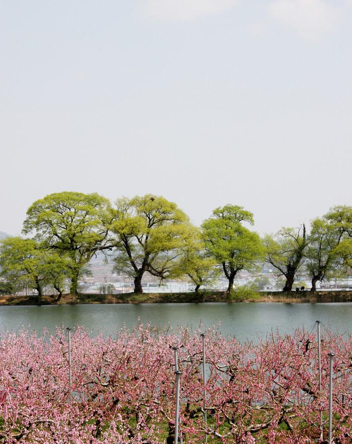 남산면에 가면 2011년 문화체육관광부의「사진찍기 좋은 녹색명소」에 선정된 반곡지가 있다. 아름드리 버드나무들이 늘어서 가지가 물에 닿아 비친 모습은 한 폭의 데칼코마니를 보는 듯하고 주변 49,500㎡ (약 1만 5천 평)이 복숭아밭으로 봄이면 무릉도원 분위기를 자아낸다. 반곡지는 복사꽃, 녹음, 단풍, 설경에 이르기까지 사계절의 아름다움을 모두 간직하고 있어 사진애호가들과 연인들의 발길이 끊이지 않는다.