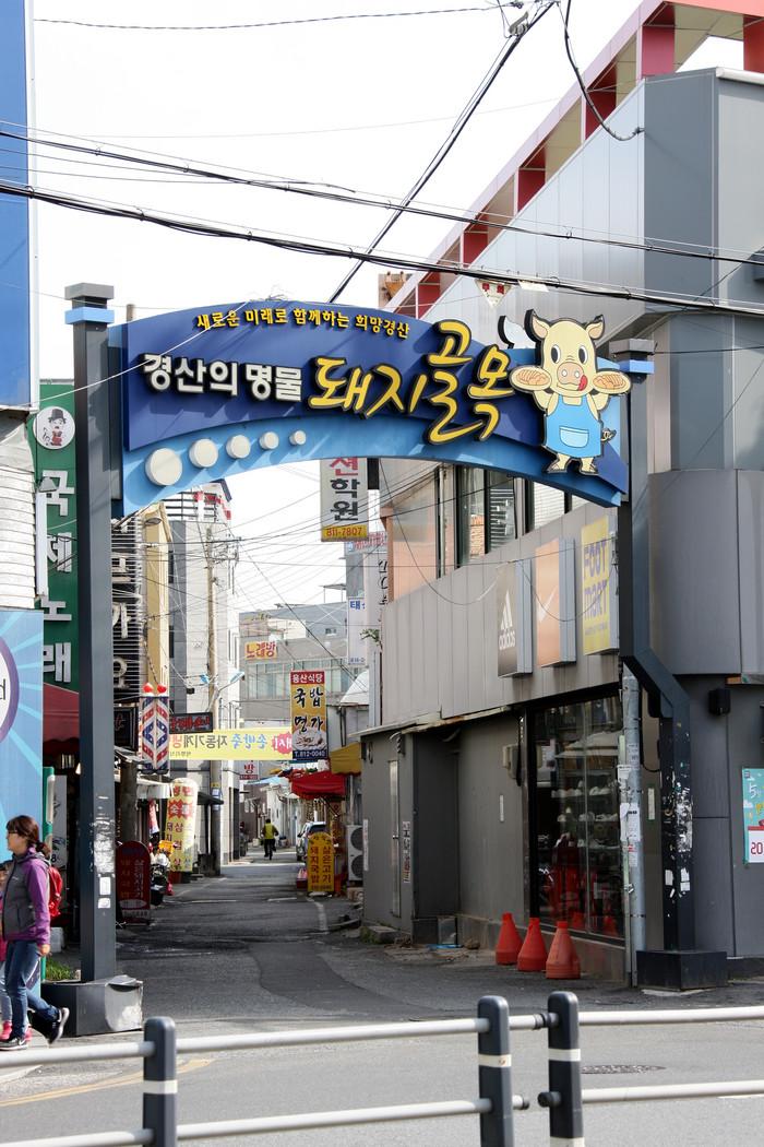 남천 가까이에는 100년 역사를 자랑하는 상설 5일장 경산시장과 경산의 명물 돼지국밥 골목이 있다.