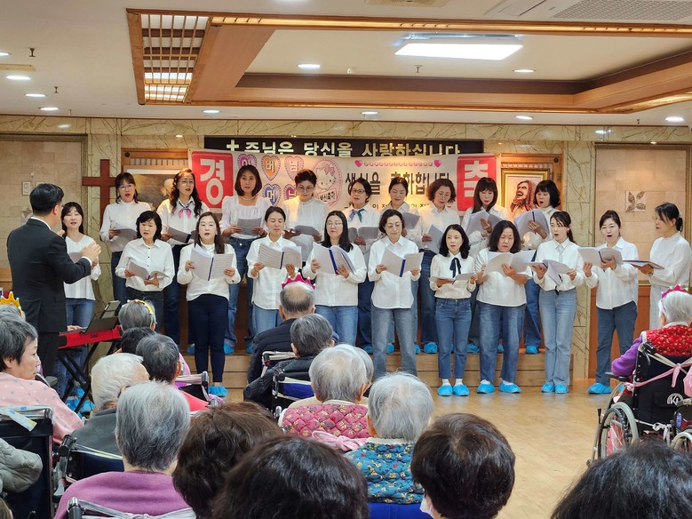 이날 20여 명의 동안구여성합창단은 어르신들의 건강 상태와 시설 여건을 고려해 작지만 편안한 분위기 속에서 위문공연을 펼쳤다. 친숙한 가요와 트로트로 어르신들의 흥을 돋우고, 추억이 깃든 동요를 다 같이 부르며 어르신들과 함께 소통하고 즐기는 뜻깊은 시간을 가졌다.