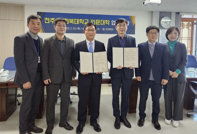시와 전북대학교 인문대학(학장 신충균)은 23일 전주 부 시 장실에서 김인태 전주부시장과 신충균 전북대 인문대 학장 등이 참석한 가운데 전주시민들의 문화 수준 향상과 전주시 도서관 활성화를 위한 업무 협약을 체결했다.