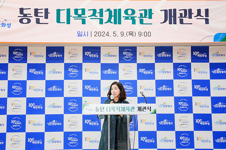 화성시의회 김경희 의장은 이날 축사에서 “동탄다목적체육관이 개관되어 지역사회의 발전에 이바지할수 있게 되어 기쁘다”라고 하며, “동탄다목적체육관이 시민 체력 증진과 문화적 체험 장소가 되어 지역공동체의 징검다리 역할을 하는 복합공간이 되기를 바란다”라고 전했다.