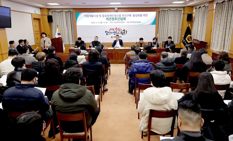 [대전 세계타임즈=이채봉 기자] 대전시의회 복지환경위원회는 9일 시의회 3층 소통실에서 황경아 의원(국민의힘, 비례대표) 주재로 「직업재활시설 및 중증장애인생산품 우선구매 활성화를 위한 의견청취 간담회」를 개최했다.