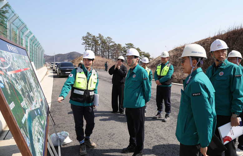 홍 부지사와 도 관계 공무원, 시공사 등 건설 현장 관계자 10여 명이 참석한 가운데, 이번 현장 점검은 공사 현황 보고, 현장 점검 등의 순으로 진행했다.