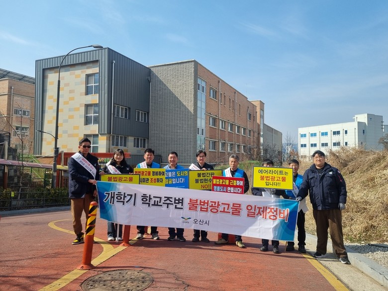 [오산시 세계타임즈=송민수 기자] 오산시(시장 이권재)는 2026년 3월 개학기를 맞아 학생들의 안전한 통학 환경 조성과 쾌적한 교육 여건 마련을 위해 학교 주변 불법 현수막에 대한 일제 정비를 추진하고 있다고 밝혔다.