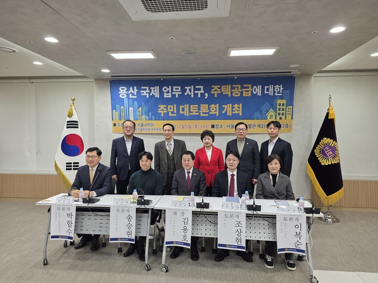 [서울 세계타임즈=이장성 기자] 서울특별시의회 도시안전건설위원회 부위원장으로 활동하고 있는 김용호 시의원(국민의힘, 용산1)은 지난 2월 5일 저녁7시 서울시의회 별관 제2대회의실에서「용산국제업무지구 주택공급에 대한 주민 대토론회」를 개최했다.