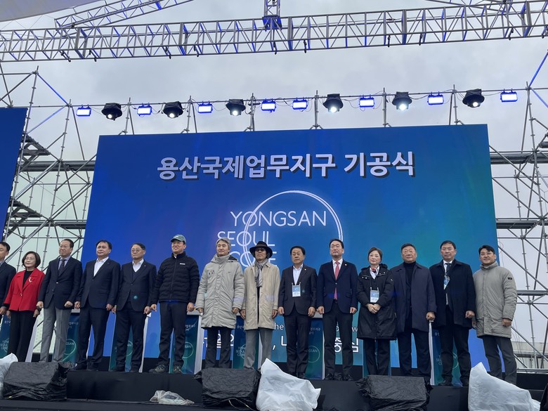 ▲ 지난해 11월 27일 용산국제업무지구 기공식에 김용호 서울시의원(오른쪽 여섯 번째)이 오세훈 시장(왼쪽 다섯 번째)과 권영세 국회의원(왼쪽 두 번째) 및 내빈들과 함께 단체 기념촬영을 하고 있다.