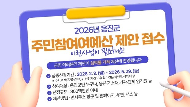 올해 공모 규모는 총 8억 원 이내이며, 옹진군민은 물론 관내 기관 및 단체 임직원이라면 누구나 제안할 수 있다. 사업 제안은 옹진군 홈페이지, 우편·팩스 또는 가까운 면사무소 방문을 통해 신청할 수 있다.