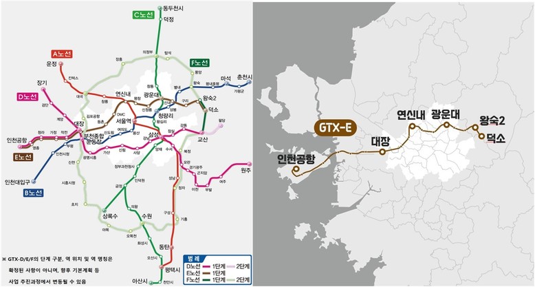 신설 노선인 GTX-E 노선은 기존 인천~대장~덕소로 이어지는 노선으로, 연신내역과 DMC역이 새롭게 포함됐다. 또한 연신내역은 GTX-A가 지나는 역으로 교통 격차 해소에 큰 도움이 될 것으로 예상된다.