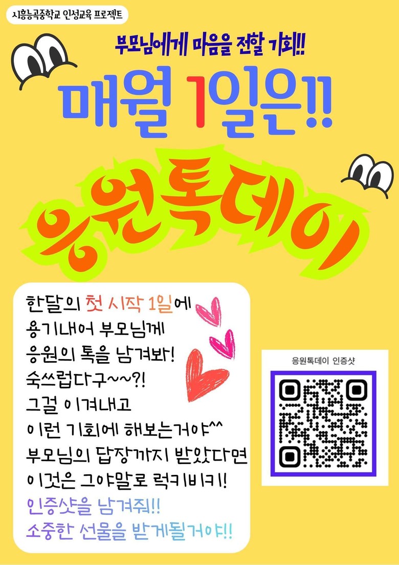 ◦ 부모와 자녀의 관계 회복을 위한 인성교육 프로그램으로 매월 응원톡데이 진행.