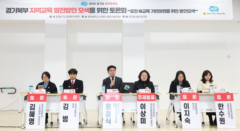 좌장을 맡은 윤충식 경기도의회 미래과학협력위원회 위원은 “포천의 교육 여건을 강점으로 삼아 IB를 성과 중심이 아닌 성장 중심 공교육 혁신 모델로, 준비된 학교부터 학생·교사·학부모가 함께 참여하는 단계적 확산 전략으로 추진해야 한다” 제언하였다.