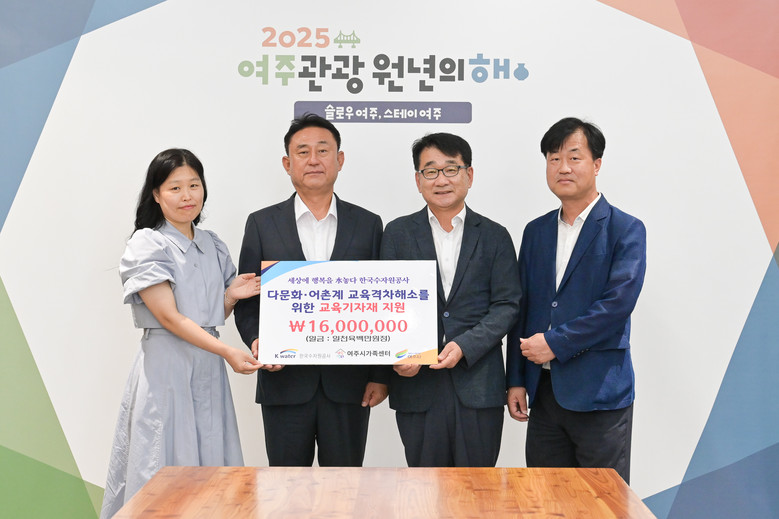 [여주시 세계타임즈=송민수 기자] 여주시는 지난 7월 9일 한국수자원공사 한강보관리단과 여주시가족센터 간 다문화 및 어촌계 교육격차 해소를 위한 교육기자재 지원금 전달식을 개최하였다고 밝혔다.