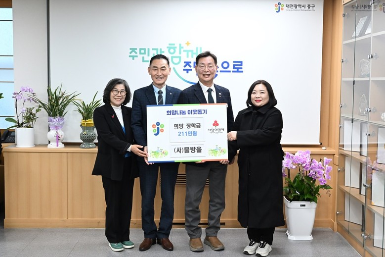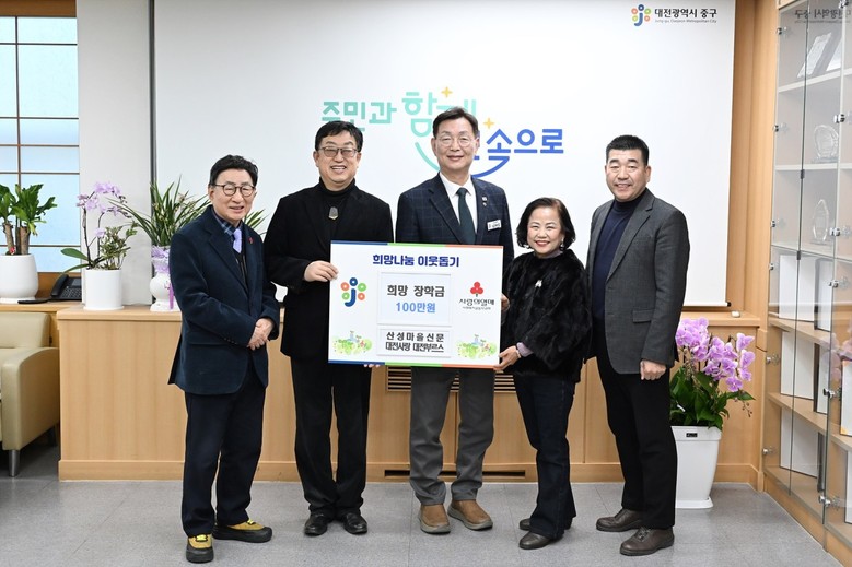 [중구 세계타임즈=이채봉 기자] 대전 중구(구청장 김제선)는 산성마을신문(대표 이기전)과 (사)물방울(대표 이준석)에서 최근 서울대학교 의과대학에 합격한 태평2동 저소득 가정 학생을 위해 장학금 311만 원을 기탁했다고 밝혔다.