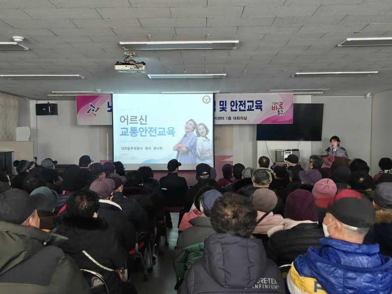 이어 진행된 안전교육은 어르신들의 안전의식 제고와 한파 관련 사고 예방을 목적으로, 동부경찰서 교통과와 한국교통안전공단 소속 전문강사를 초빙해 ▲교통안전교육 ▲한파 예방교육 순으로 진행됐다.
