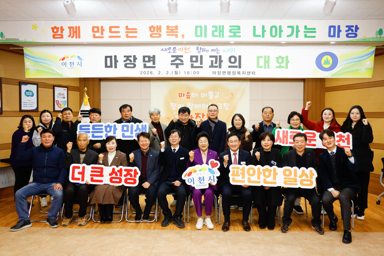 [이천시 세계타임즈=송민수 기자] 이천시(시장 김경희)는 지난 2월 2일 마장면 행정복지센터에서 열린 ‘2026년 마장면 주민과의 대화’를 끝으로 올해 첫 주민 소통 행보를 마무리했다. 이번 자리는 생활 속 불편과 지역 현안을 직접 공유하고, 주민 의견을 시정에 적극 반영하기 위해 마련됐다.