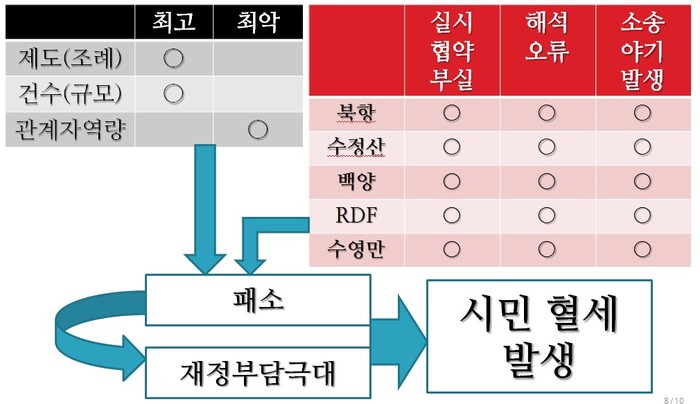 - 무리한 소송과 이에 따른 패소로 막대한 시민의 혈세가 빠져 나가