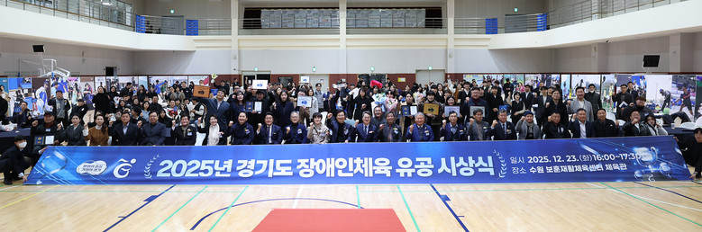경기도 장애인체육 유공 시상식은 지난 11월 제45회 전국장애인체육대회 5연패 등 도 선수단의 성과를 도민과 함께 나누고 도 장애인체육을 위해 헌신한 지도자, 선수 등 관계자들의 노고를 격려하기 위해 23일 보훈재활체육센터에서 진행됐다.