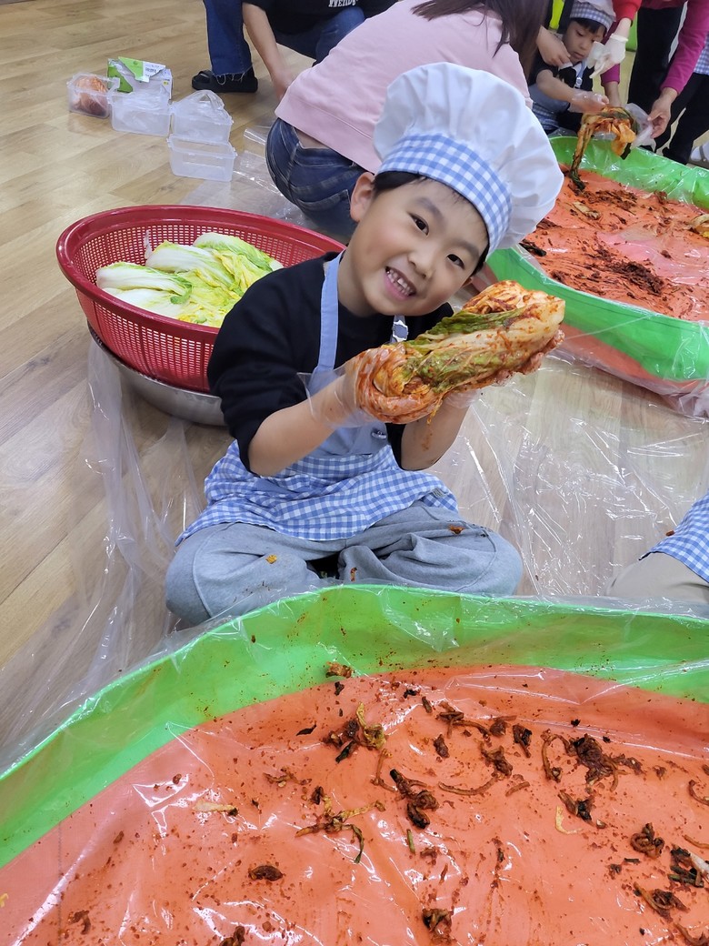 유아들은 우리나라 전통음식을 대표하는 김치의 좋은 점을 알아보고, 김치의 재료에 대해 알아본 후 절인 배추를 보고 신기해했다. 김장을 위해 들어갈 재료를 살펴보고 김치를 담그는 과정을 직접 경험해 보았다. 배춧잎 사이에 꼼꼼하게 양념을 바르며 정성스럽게 김치를 만들었다.