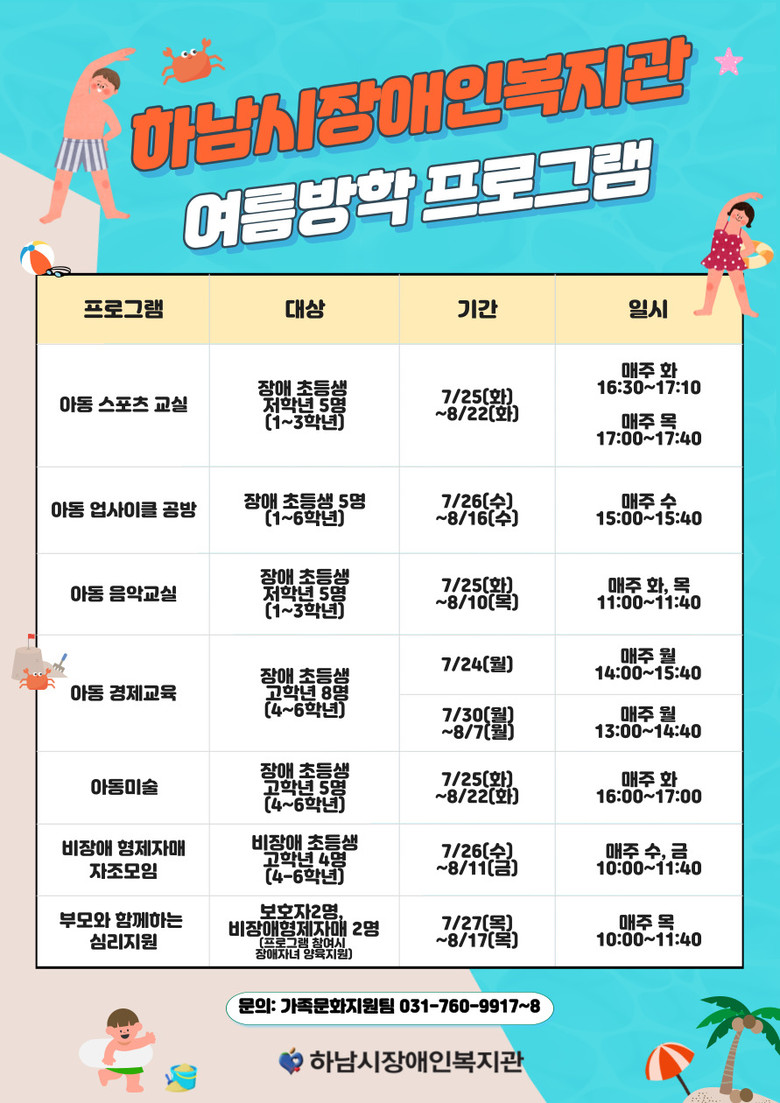 자세한 사항은 하남시장애인복지관 홈페이지(http://www.hanamrehab.or.kr) 또는 전화(031-760-9917~8)로 문의가능하다.