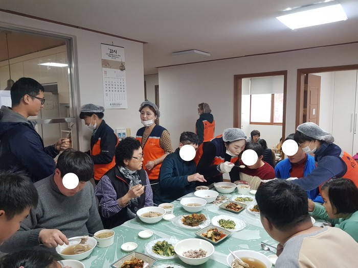 이날 삼계탕 봉사에는 유희자 단장을 비롯한 회원15명이 삼계탕, 닭죽, 묵무침, 부침개를 준비하여 30명의 장애인들에게 점심식사를 대접하였다.