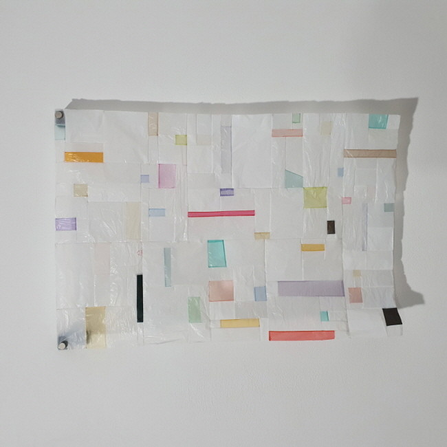 전시 측은 "작가는 어린 시절에 한복 집을 하는 큰 어머니가 작가의 가족에게 선물한 조각보를 처음 접한다. 그 조각보의 고유한 아름다운에 영향을 받은 작가는 뉴욕과 서울에서 수집한 비닐봉지를 실로 꿰매는 조각보의 전통을 업데이트한 작품을 만들기 시작한다. 한국의 조각보와 다른 문화권에서 퀼트의 공통점은 조각천을 재활용해 재창조하는 것이지만 차이점은 한국 조각보의 디자인과 구성은 즉흥적이고 패턴이 자유로운 데 있다. '플라스틱 조각보'는 그러한 디자인과 작가의 큰어머니의 바느질을 오마주한 시리즈"라고 설명한다.