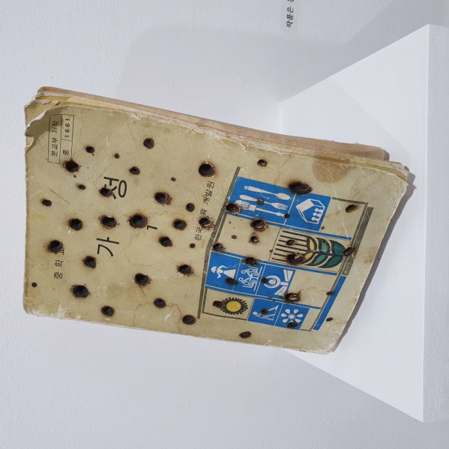 작가의 옛 중고등학교 시절의 교과서, 그 시절 교과서는 배움의 전부였다. 오직 그 안에서 사실을 찾으려 했고, 그 안에만 답이 있었다. 물론 교과서는 시대를 거듭하며 계속 바뀌어 갔다. 사교육이 늘어나면서 교과서의 의미도 점저 퇴색돼 갔다. 요즘 학생들은 어떤 교과서로 공부를 하는지 모르지만 말이다. 작가는 당시 사회의 시대적 상황을 내러티브 했다. 가사 교과서에는 성 역할의 분할을, 교련 교과서에는 정치적 선동과 전시 상황에서의 성 역할 분할이 담겨있다.