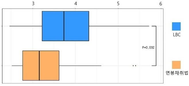 | ▲LBC 검체와 면봉채취법 검체 간 미생물 다양성 분석 지표. LBC 검체가 면봉채취법 검체보다 미생물이 다양하게 분포됨을 알 수 있다.(사진=분당서울대병원) |