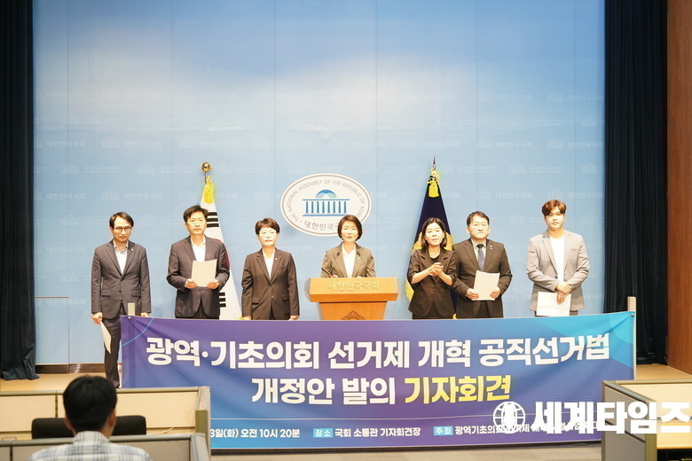 '임미애' 더불어민주당 의원이 23일 국회 소통관에서 광역·기초의회 선거제 개혁을 위한 공직선거법 개정안 대표발의 기자회견을 하고 있다.