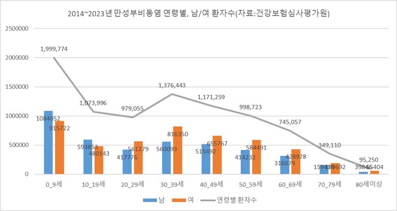 | ▲만성부비동염 연령별,성별환자수.(자료제공=분당제생병원) |