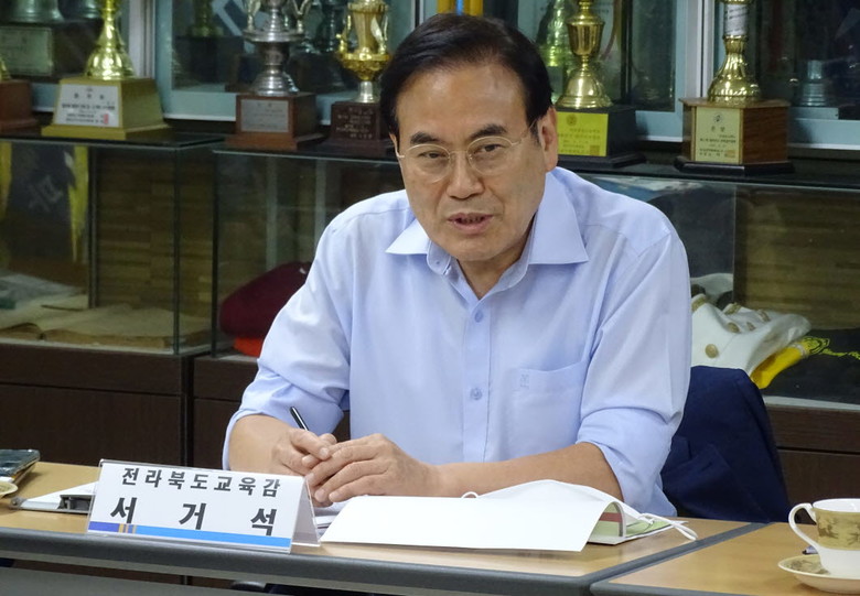 [익산=세계타임즈 이정술 기자] 서거석 전북도 교육감이 9일(화) 오후 15시, 이리공업고등학교(교장 김기옥, 이하 이리공고) 1층 역사관에서 ‘토목과 폐과’ 문제에 대한 협의회를 진행했다.