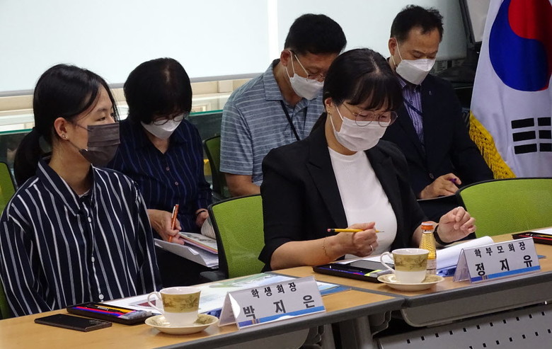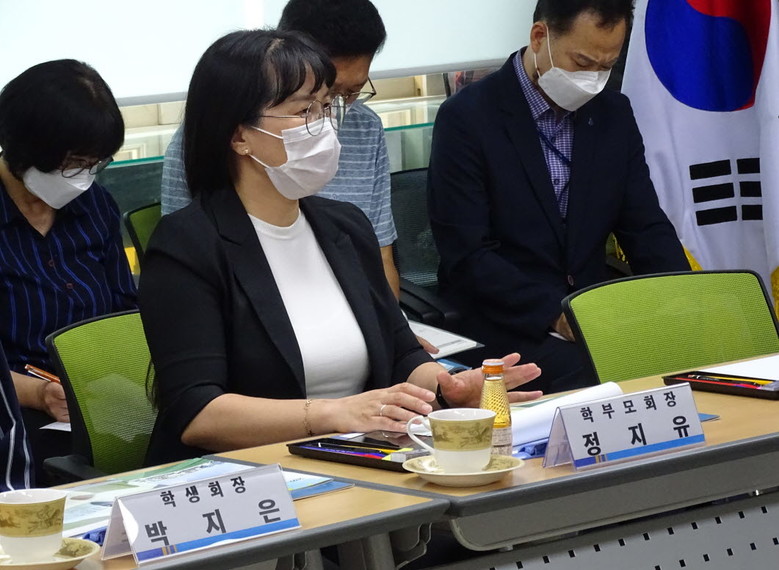 | ▲박지은 학색회장, 정지유 학부모회장이 협의회를 진행하고 있다 |