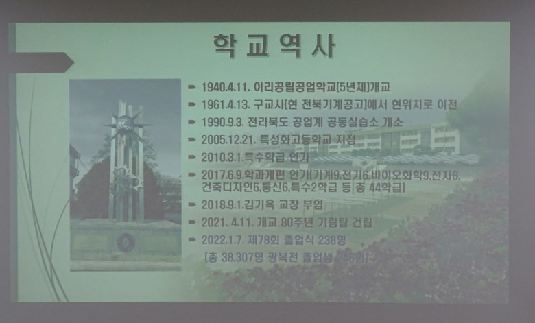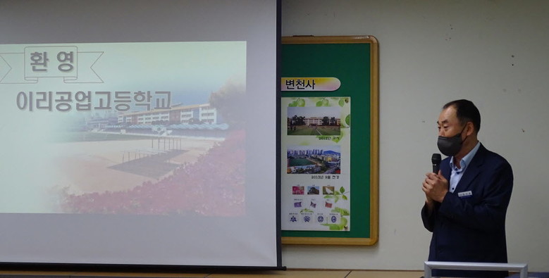 | ▲김기옥 이리공고 교장이 설명을 하고 있다 |