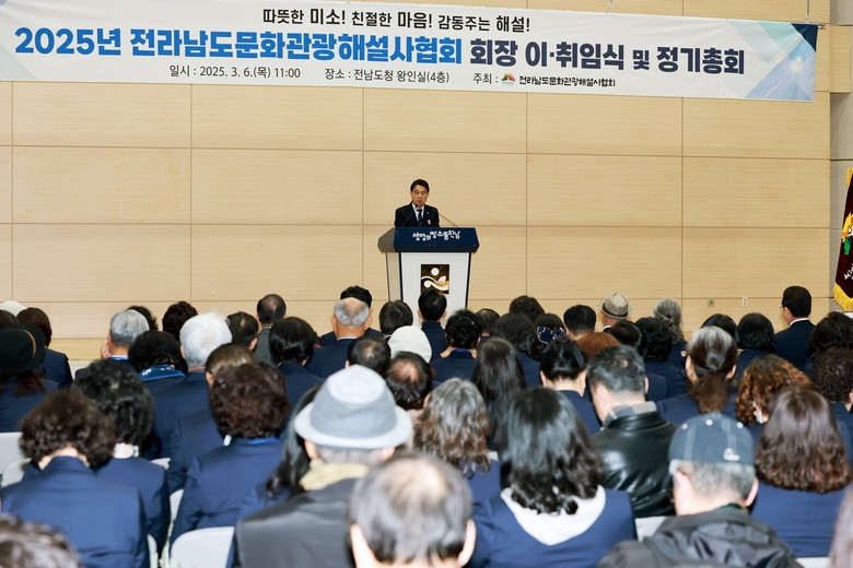 [전남 세계타임즈=우덕현 기자] 김태균 전남도의장은 3월 6일 오전 11시 전남도청 왕인실에서 개최된 ‘전남문화관광해설사협회장 이‧취임식’에 참석해 취임 축하와 함께 “전남의 홍보대사로서 여러분들의 역할이 무엇보다 중요하다”고 강조했다.