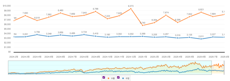 도는 25일 ‘2025년 8월 충청남도 수출입 동향 보고’ 발표를 통해 수출액 585억 달러, 수입액 252억 달러를 기록해 무역수지 333억 달러 흑자를 달성했다고 밝혔다.