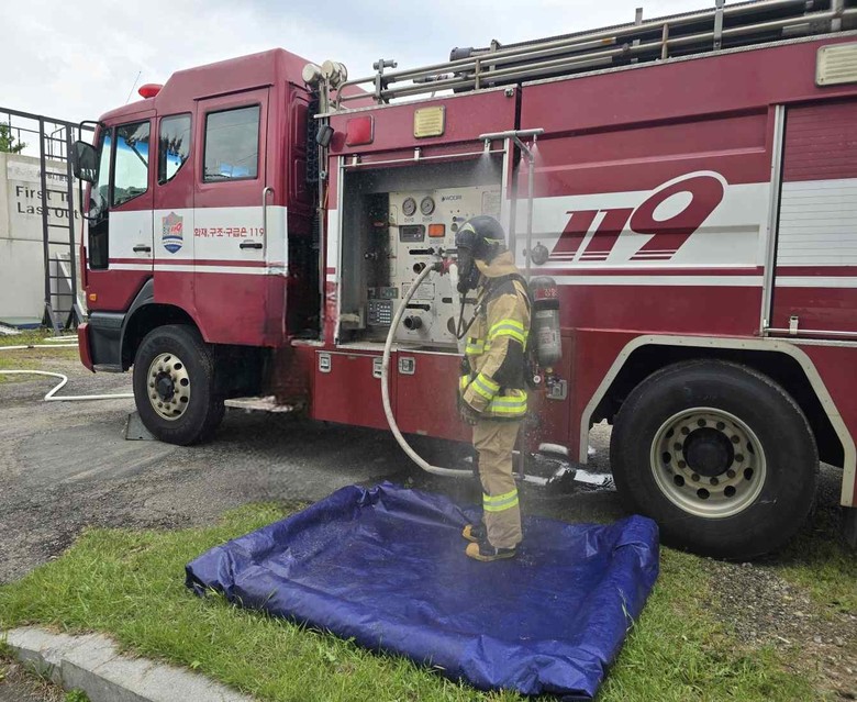 특히 데콘 노즐은 여름철 무더위에 노출된 소방공무원의 체온을 빠르게 낮추는 냉각 장비로도 주목받고 있다.