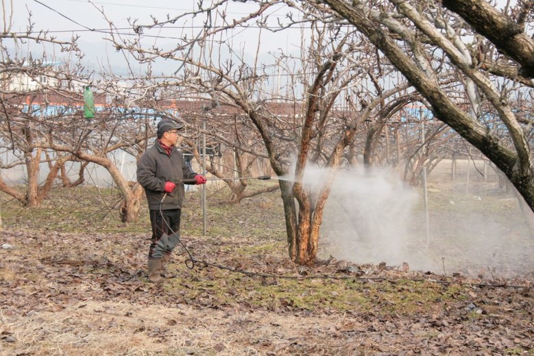 나무껍질을 제거하는 조피작업과 기계유유제 살포 등 월동 병해충 방제를 적기에 시행하면 초기 병해충 발생의 밀도를 줄일 수 있다.
