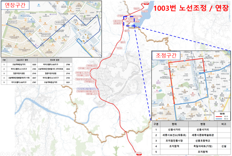 | ▲ 1003번 노선조정 및 연장 |