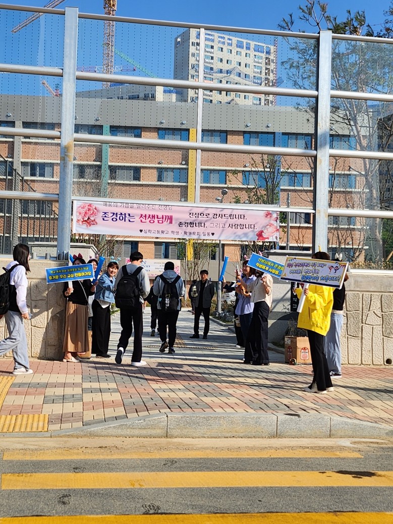 [파주시 세계타임즈=송민수 기자] 파주 심학고등학교(교장 김현제)가 지난 5월 3일 학부모회 주관으로 교직원과 학부모회가 함께 개교 축하 및 학생 격려를 위한 등굣길 아침맞이 행사를 실시했다.