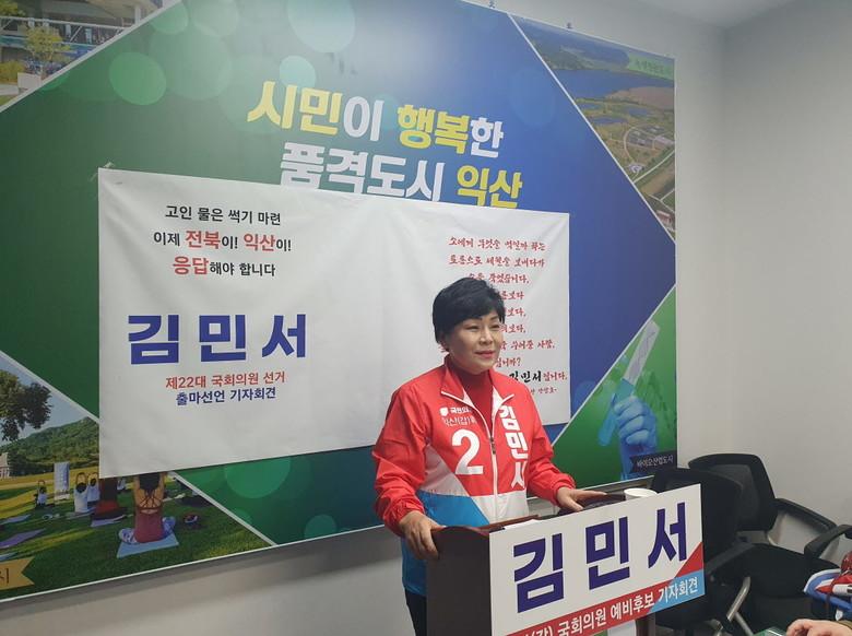 [익산=세계타임즈 이정술 기자] 김민서(전, 익산시의원) 국민의힘 국회의원 후보가 다가오는 4월 10일 총선에서 익산시 갑지역으로 출마를 선언함으로써 이춘석 더불어민주당 후보, 전권희 진보당 후보와 한판 대결이 성사됐다.