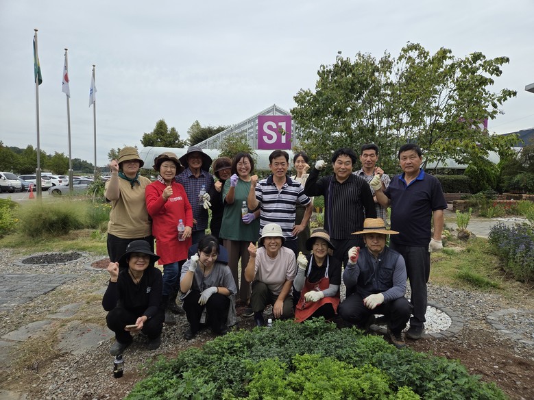 이날 활동에는 연구회원 20여 명이 참여해 국화, 아스타, 층층꽃, 남천, 변산향유, 베고니아, 채송화 등 직접 기른 꽃 500본 식재했다.