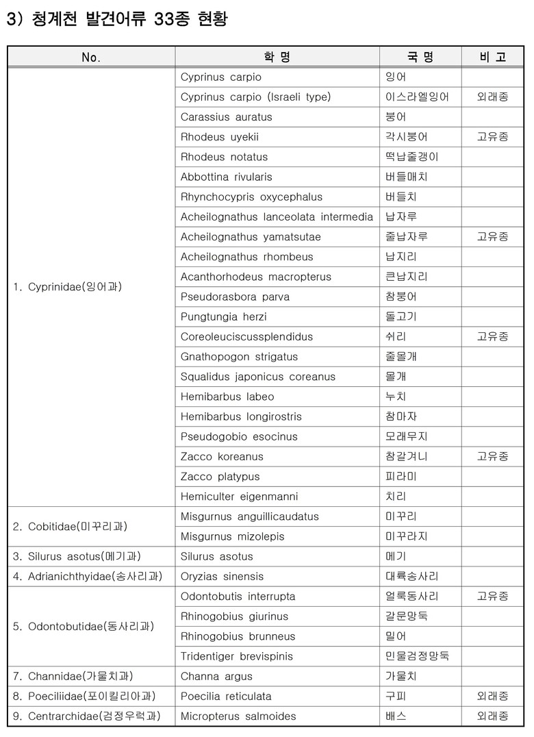 - 청계천 복원이후 가장 다양한 어종 관찰된 사례, 청계천 생태계 건강성 확인